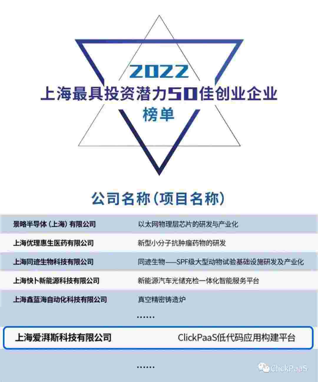 沃钱包 作为国内低代码PaaS平台的领军企业,,,,与120家创企入围角逐。。。。期间接受了来自德同资本、、、、领中资本等知名投资机构的10位投资人组成专家评委团的背靠背盲选。。。。并最终入围“2022上海最具投资潜力50佳创业企业”榜单,,,被列入“上海市重点培育创业企业库”。。。