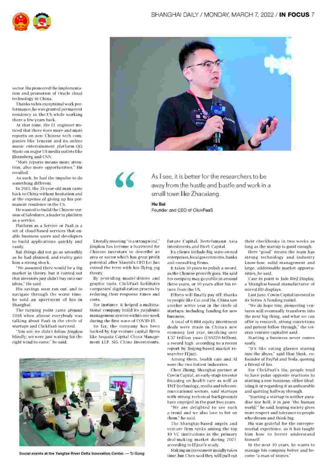 《上海日报》专访沃钱包创始人、、CEO胡柏,,,,探究其创业背后的故事!!!!